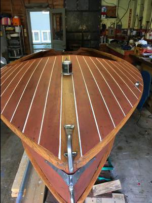 95% restored 1952 Wagemaker Wolverine 14ft mahogany outboard.