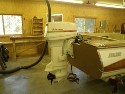 Beautiful 17' mahogany runabout, lovingly restored with a 1964 60 hp Johnson outboard.