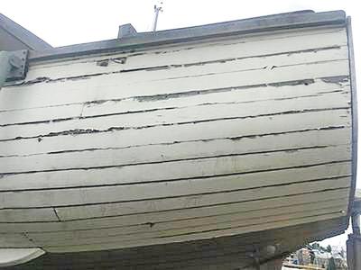 The boat is an empty hull and I have taken the caulking out between planking as there was all types of it in them and she wanted a good caulking between them before going out to sea.