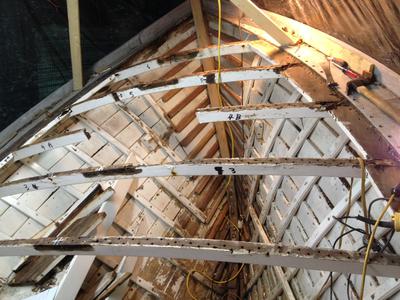 Disassemble the teak cockpit sole, remove the fuel tanks, re-rib the turn of the bilge in the aft 1/3 of the boat, install new white oak deck beams, relay the original teak and give it a proper caulking.