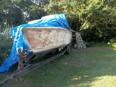 She has been allowed to fall into a sad state but Plywood boats are not that hard to restore and she is basically sound.