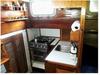 From the center cockpit you can go down into the main cabin where the galley is to port with a three burner propane stove and sink.