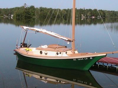 Constructed of Cyprus and Mahogony, a full keelson and transom hung rudder makes her look like something straight out of the 18th century.