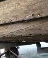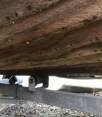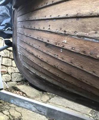 Unfortunately a previous owner had the hull of a 14 foot clinker RNSA sailing dinghy sand blasted to remove old paint.