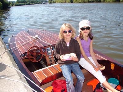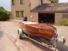She was built from plans from Sandy Point Boat Works. , mahogany plywood over oak frames.