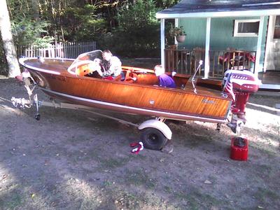 It appears that a stain or tinted varnish was used on the orig. finish as the cedar is much lighter than the mahogany, plus I noticed when I stripped off the varnish, when sanding there appeared to be a color tinting coming off under the varnish.