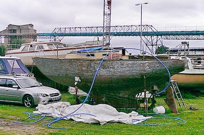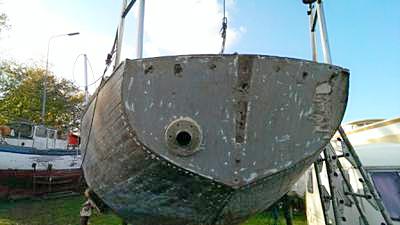 There are some planks that need replacing mainly to the bow and amidships, where the chain stays are, also the transom will need to be re-laminated.